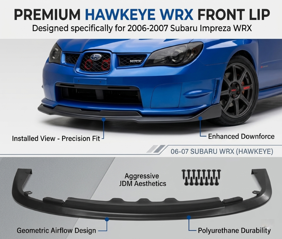 Transform the front-end styling of your iconic Hawkeye with our premium CS2 Front Bumper Lip Spoiler. Designed specifically for the 2005-2007 Subaru Impreza WRX and STI, this front lip adds a track-ready, aggressive stance while improving aerodynamics and downforce.