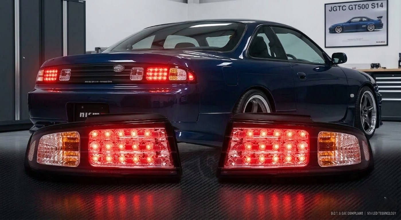 Give Your S14 the Ultimate JDM Rear-End Transformation Upgrade the look of your 1993–1998 Nissan S14 200SX or Silvia with this premium JDM Black Type LED Tail Light Kit. Whether you are rocking a Series 1 (Zenki) or Series 2 (Kouki), these tail lights completely modernize your rear end while keeping that aggressive, authentic JDM aesthetic.