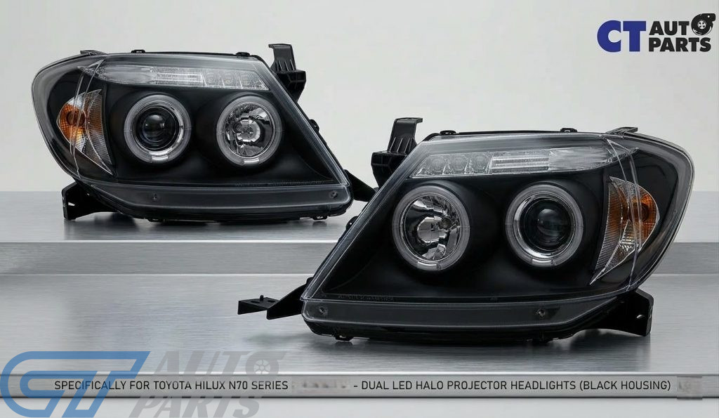Toughen Up the Look of Your Hilux Rig! Give your 2005-2010 Toyota Hilux SR5 a massive front-end upgrade with these premium Black Housing Dual Halo Headlights. Whether you’re navigating the daily commute or heading off-road for the weekend, these lights ditch the dated factory chrome for a modern, aggressive blackout look that completely transforms your ute.