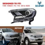Transform the front-end of your Ford Ranger with these VLAND Full LED Headlights. Specifically engineered for the PX2 and PXS series, these units replace the dated factory halogen housings with a sharp, sophisticated “Mustang-style” Tri-LED design. Featuring modern sequential indicators and a high-intensity startup animation, they offer a massive boost in both road presence and nighttime safety.