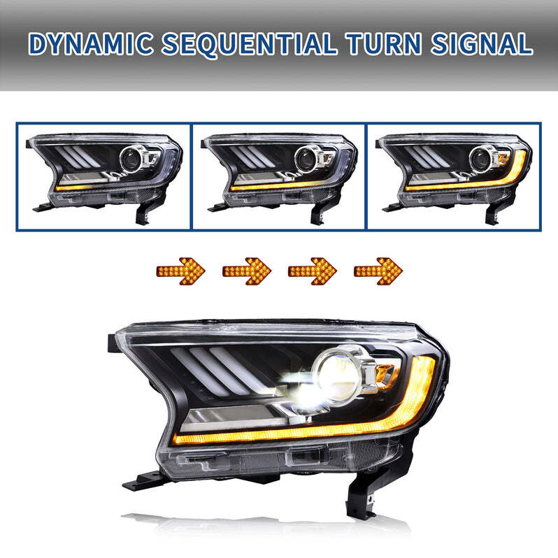 VLAND Full LED Headlights for Ford Ranger PX2 / PXS (2016–2020) | Sequential Indicators